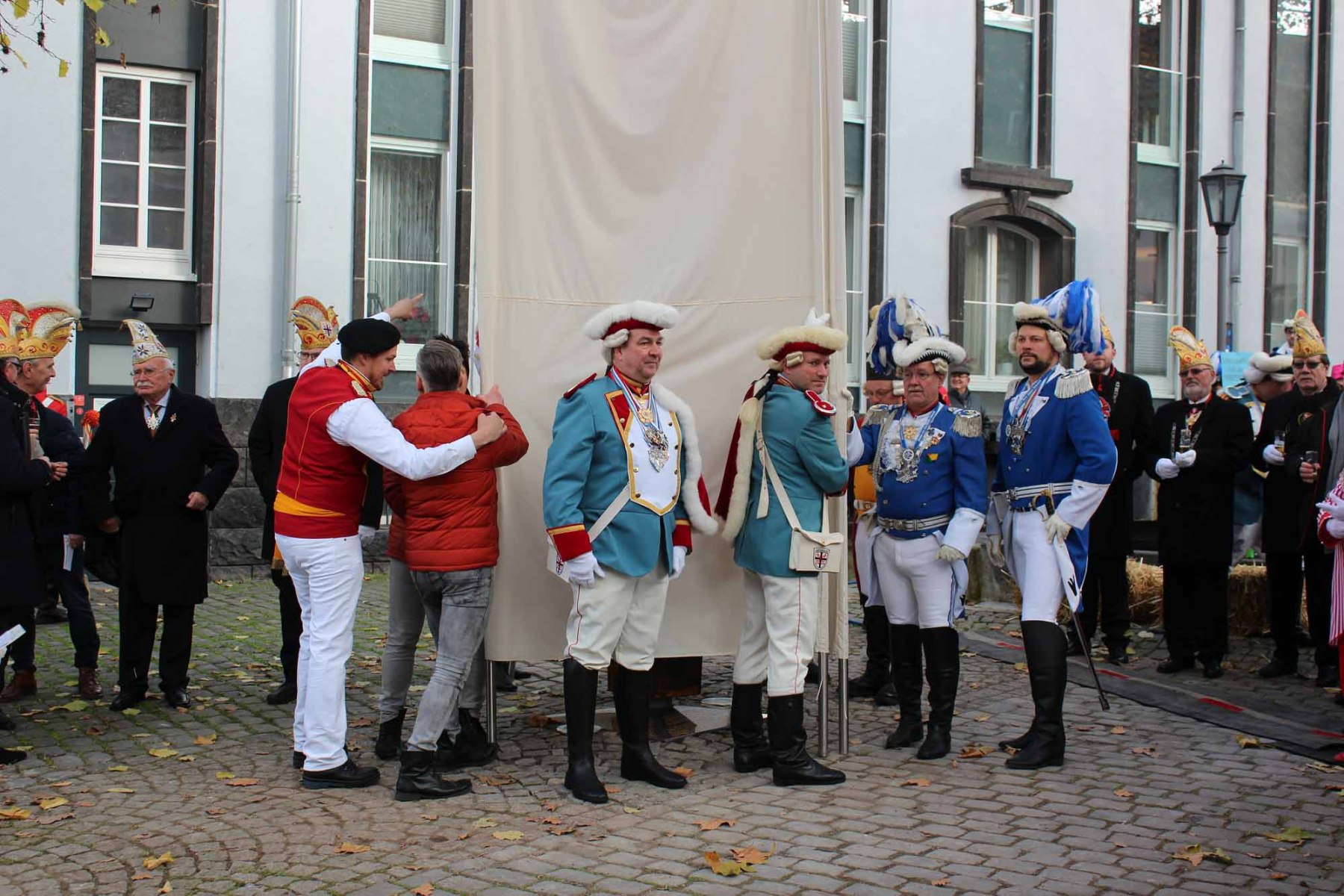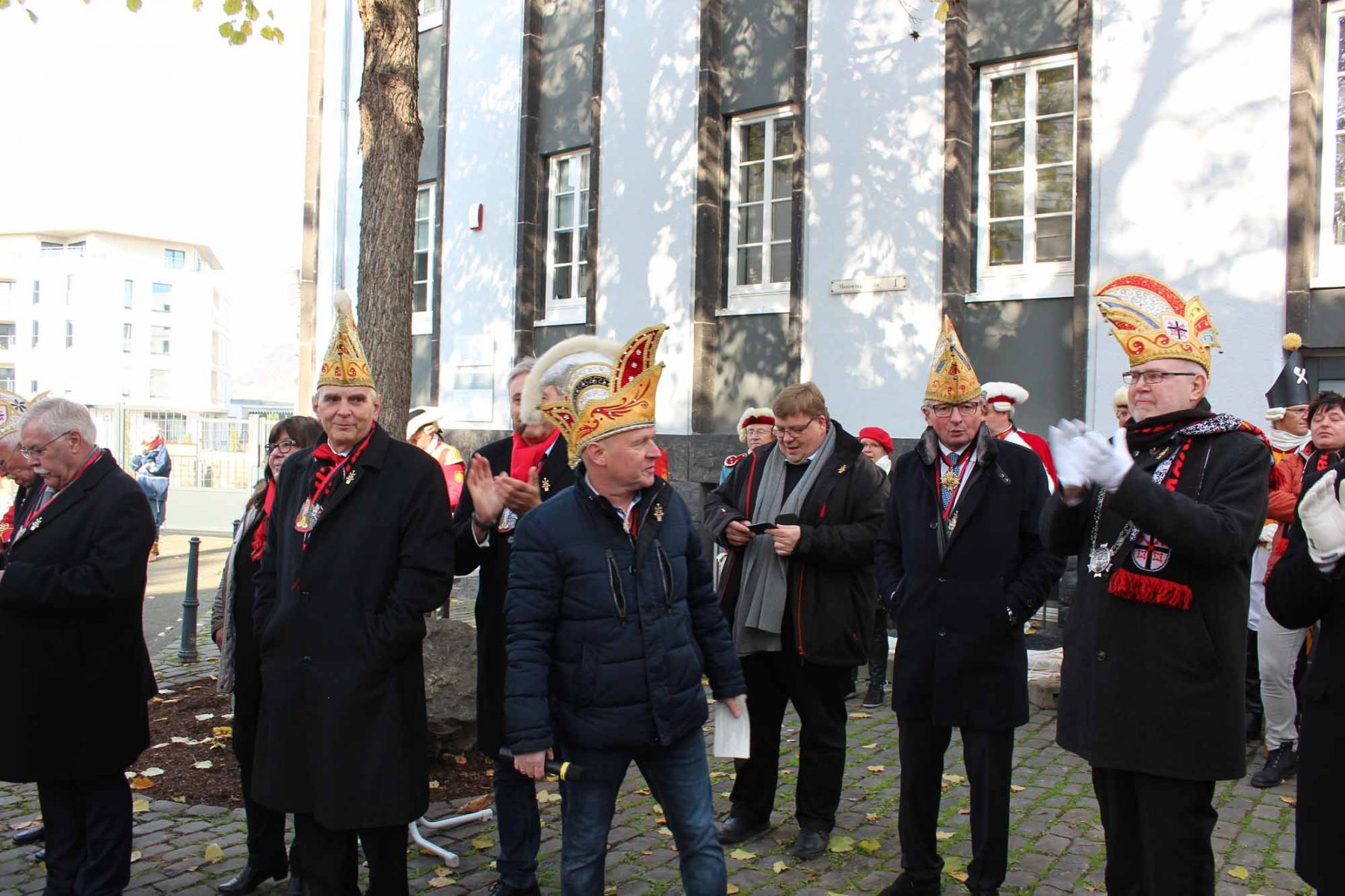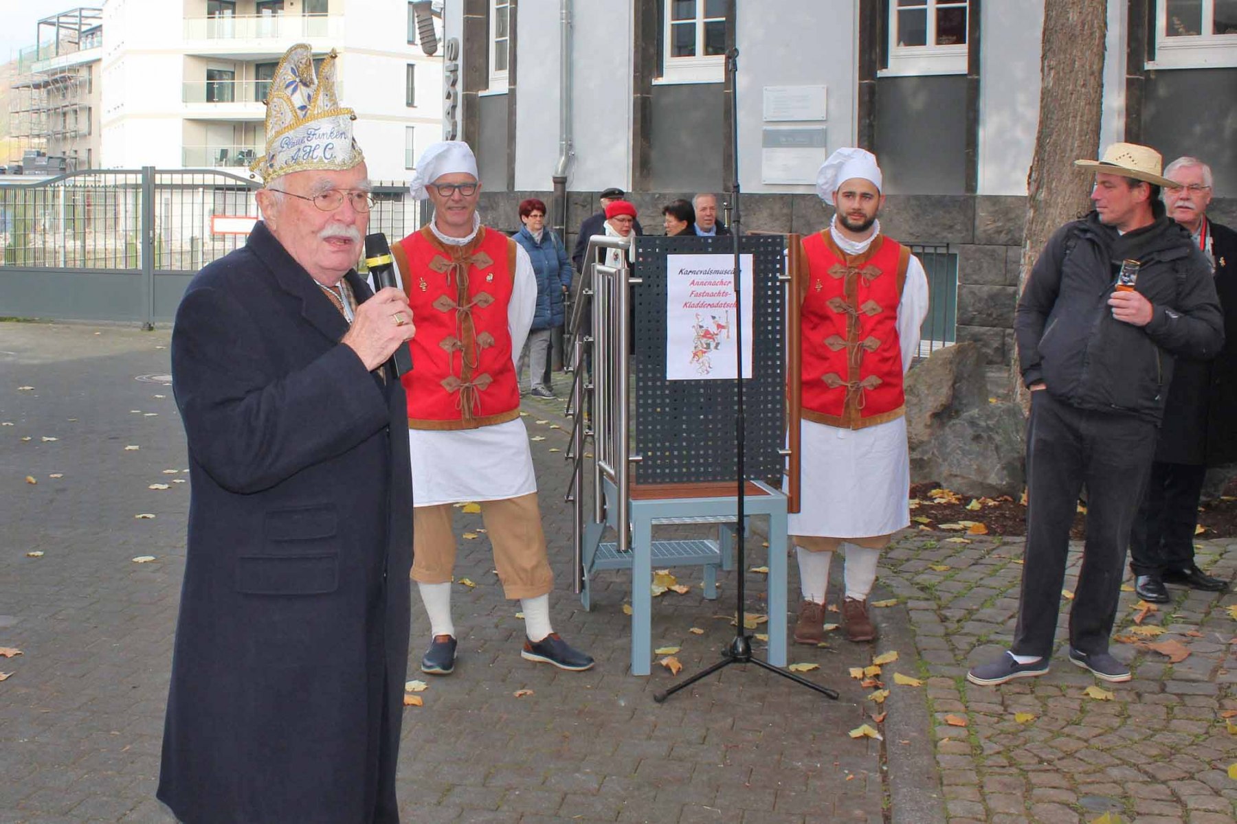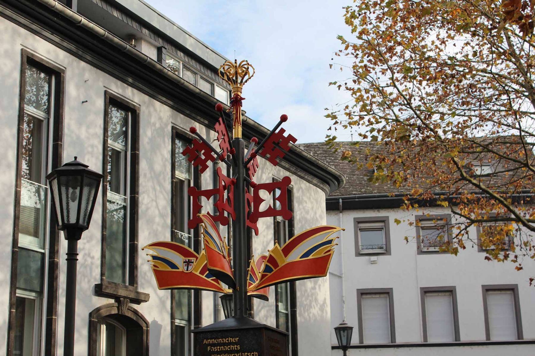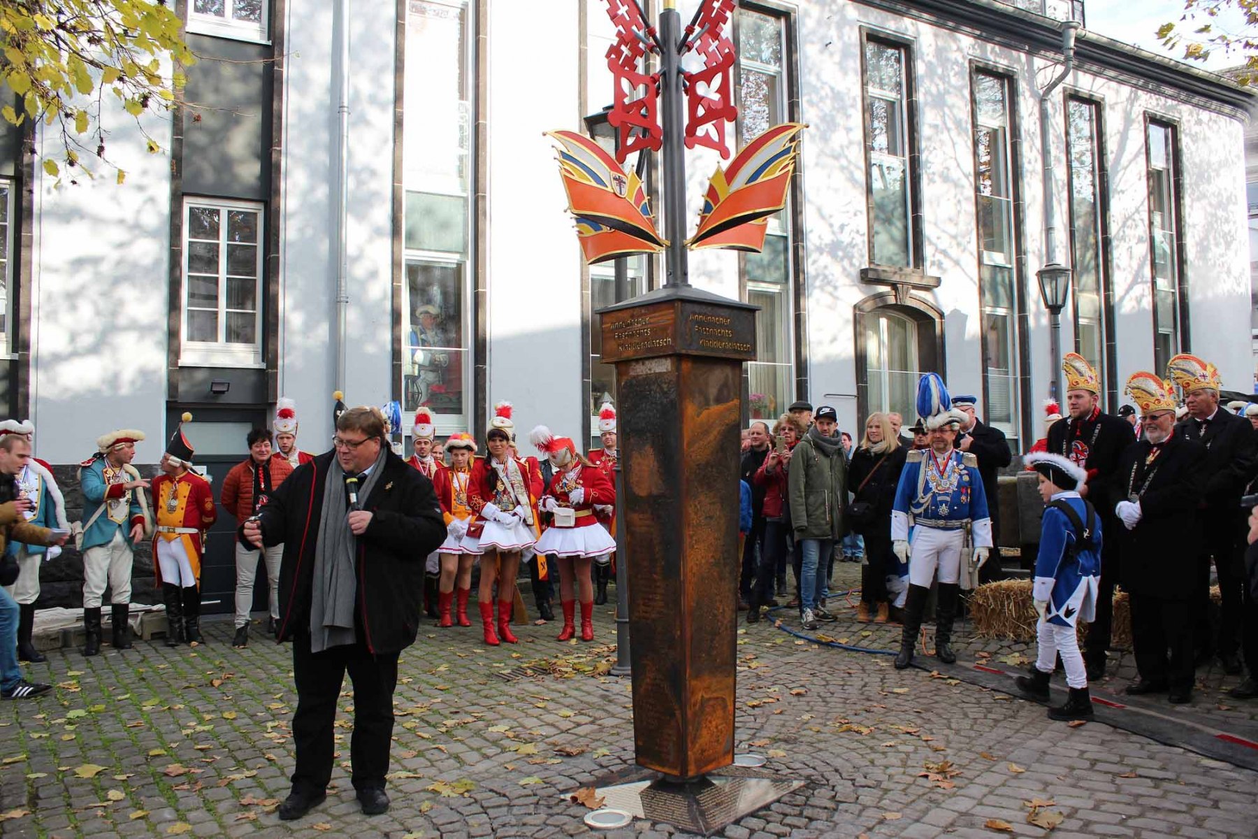 „Eine 4,20 Meter hohe, rostfarbene Metallsäule, in ihrem unteren Teil versehen mit Namensgravuren der rund 80 Tollitätenpaare, die von 1896 bis 2019 als närrische Regenten in die Karnevalshistorie der Bäckerjungenstadt einzogen. Sie bietet noch Platz für etwa 40 weitere Prinzenpaare. Die Prinzen-Säule trägt die Aufschrift „Andernacher Fastnachts-Kladderadatsch“. Ihren oberen Teil bildet ein Stahlrohr, das von vier mehrfarbigen Narrenkappen und großen roten Schlüsseln der Stadt geziert wird. Darauf als Spitze ein goldenes Prinzenzepter. Am Fuß des Brauchtums-Denkmals, das in der Dunkelheit durch Strahler beleuchtet werden kann, erfährt man die Namen der ausführenden Personen und Firmen. Auch die Spenderinnen und Spender werden genannt.“