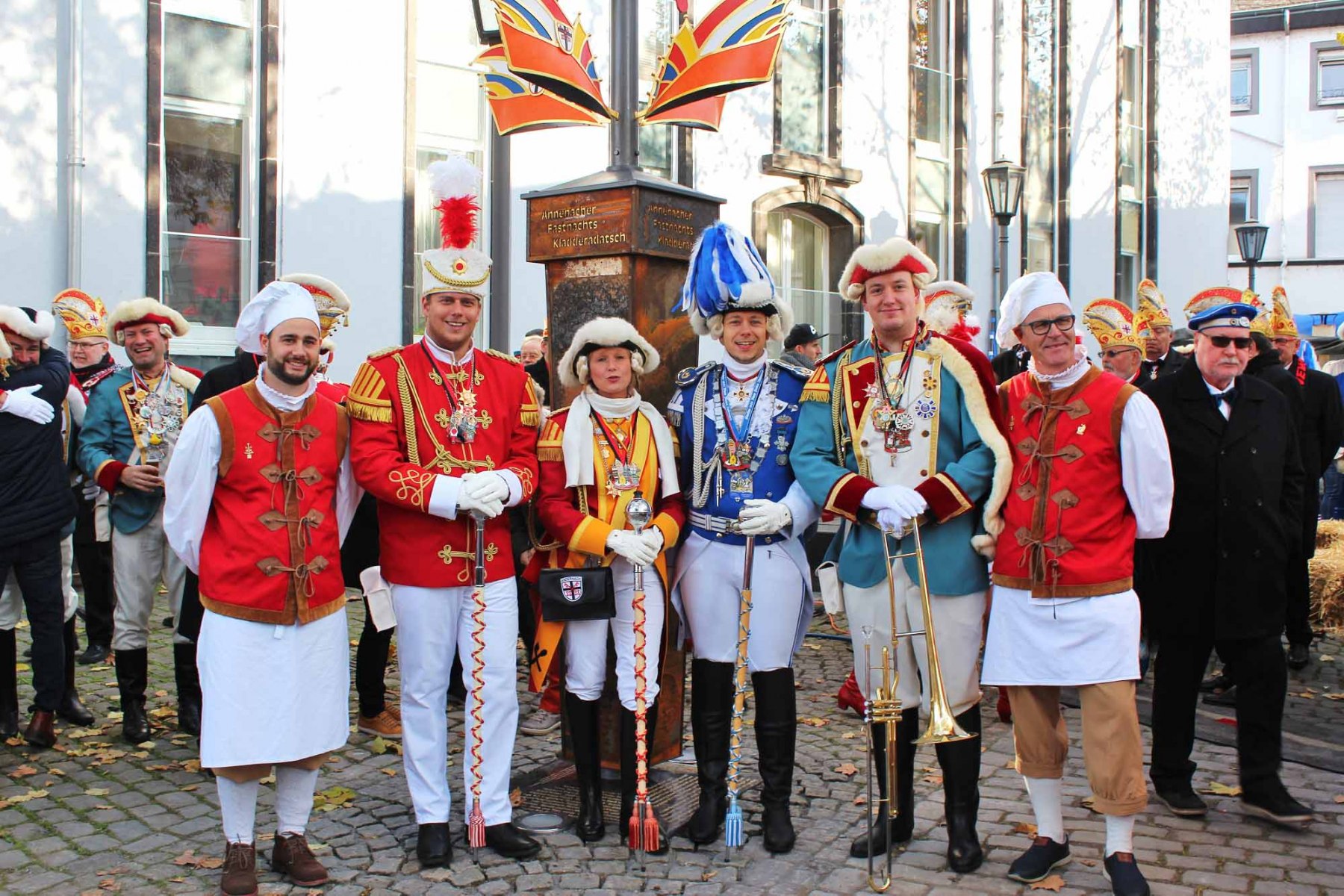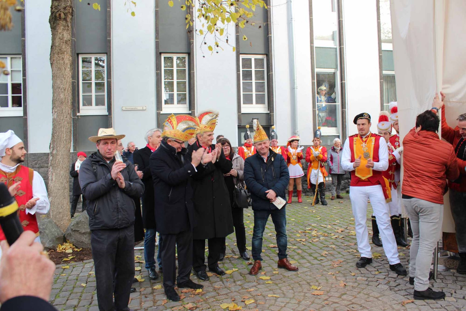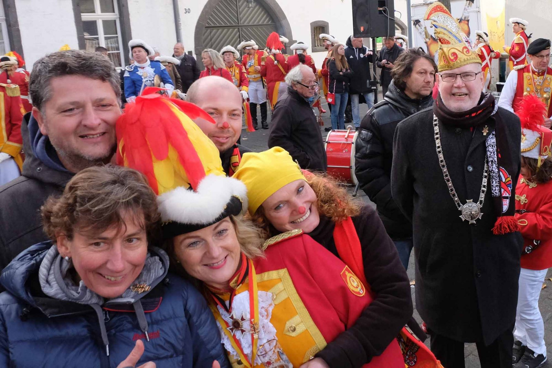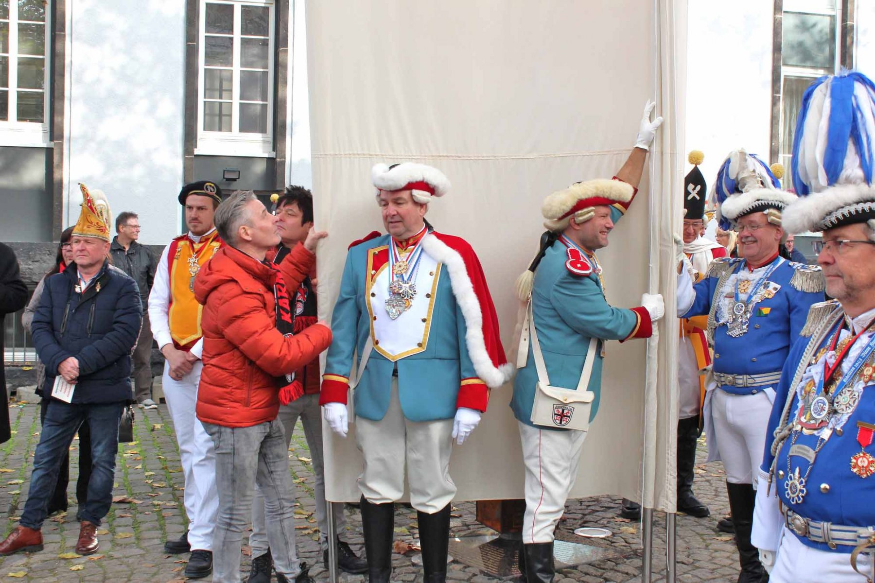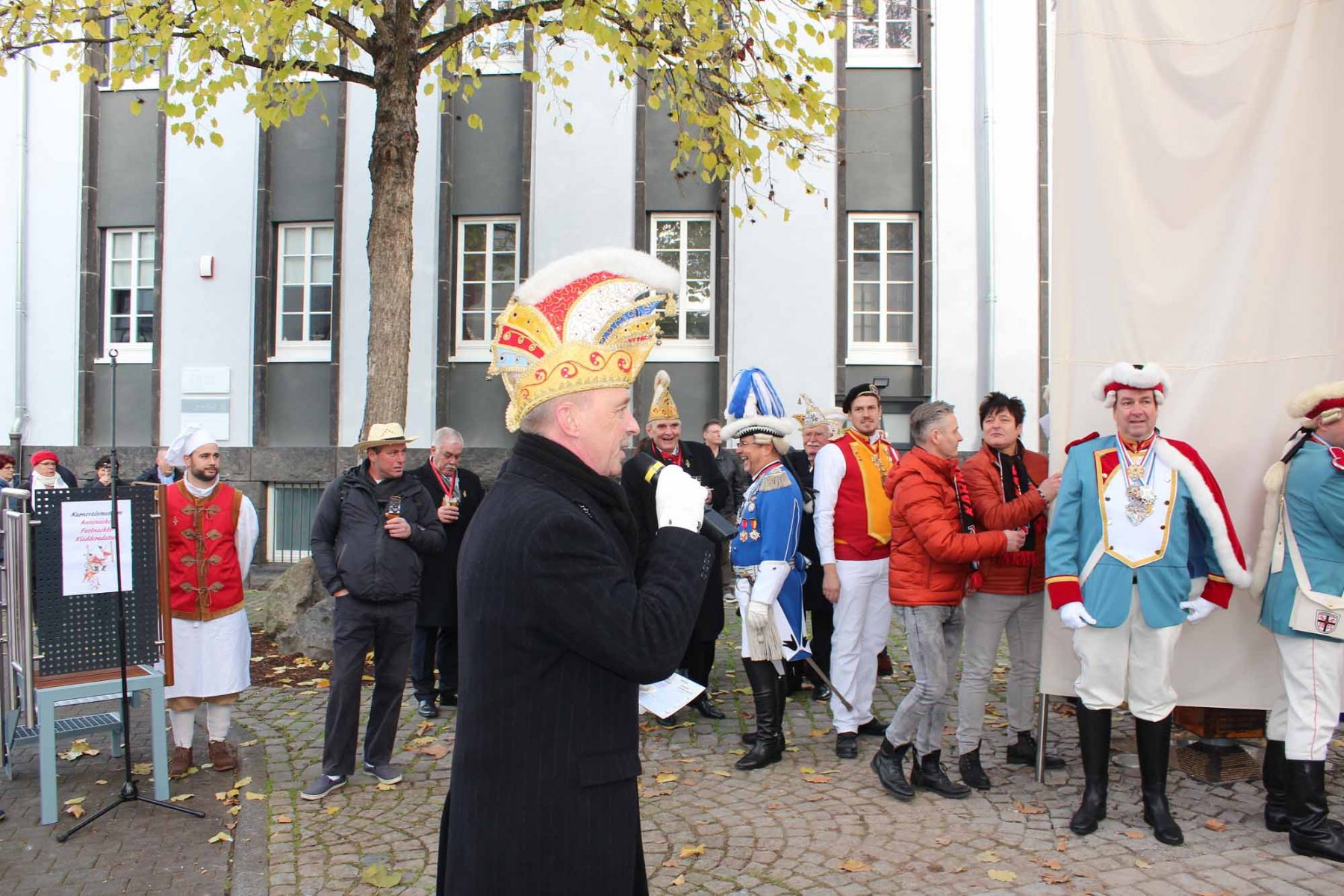 „Eine 4,20 Meter hohe, rostfarbene Metallsäule, in ihrem unteren Teil versehen mit Namensgravuren der rund 80 Tollitätenpaare, die von 1896 bis 2019 als närrische Regenten in die Karnevalshistorie der Bäckerjungenstadt einzogen. Sie bietet noch Platz für etwa 40 weitere Prinzenpaare. Die Prinzen-Säule trägt die Aufschrift „Andernacher Fastnachts-Kladderadatsch“. Ihren oberen Teil bildet ein Stahlrohr, das von vier mehrfarbigen Narrenkappen und großen roten Schlüsseln der Stadt geziert wird. Darauf als Spitze ein goldenes Prinzenzepter. Am Fuß des Brauchtums-Denkmals, das in der Dunkelheit durch Strahler beleuchtet werden kann, erfährt man die Namen der ausführenden Personen und Firmen. Auch die Spenderinnen und Spender werden genannt.“