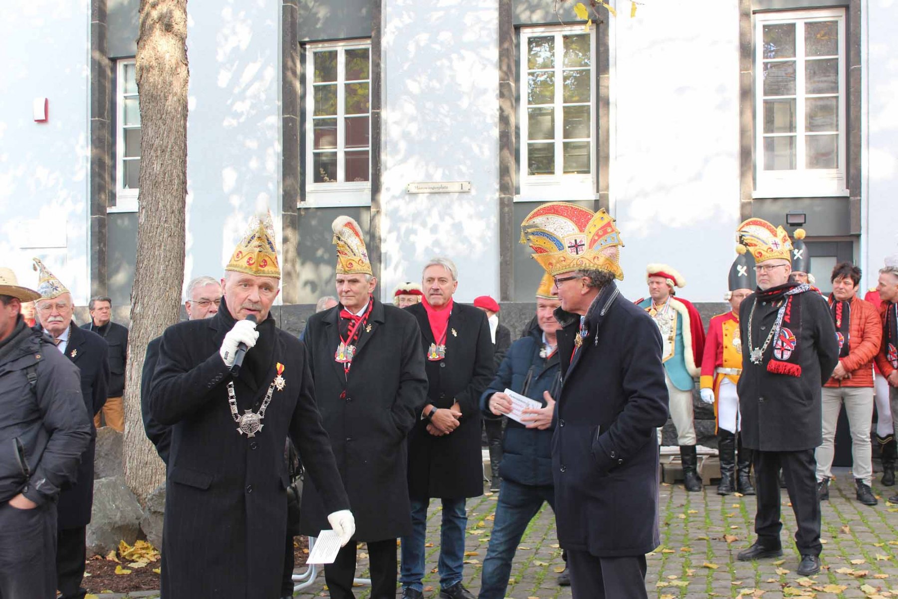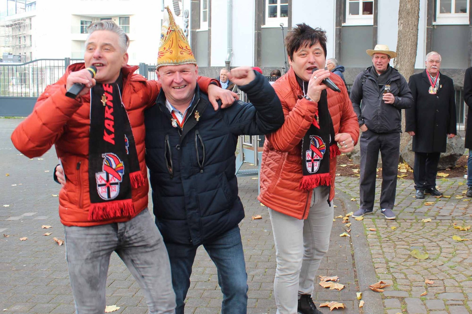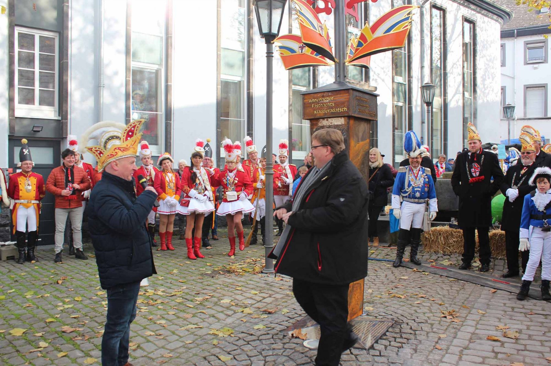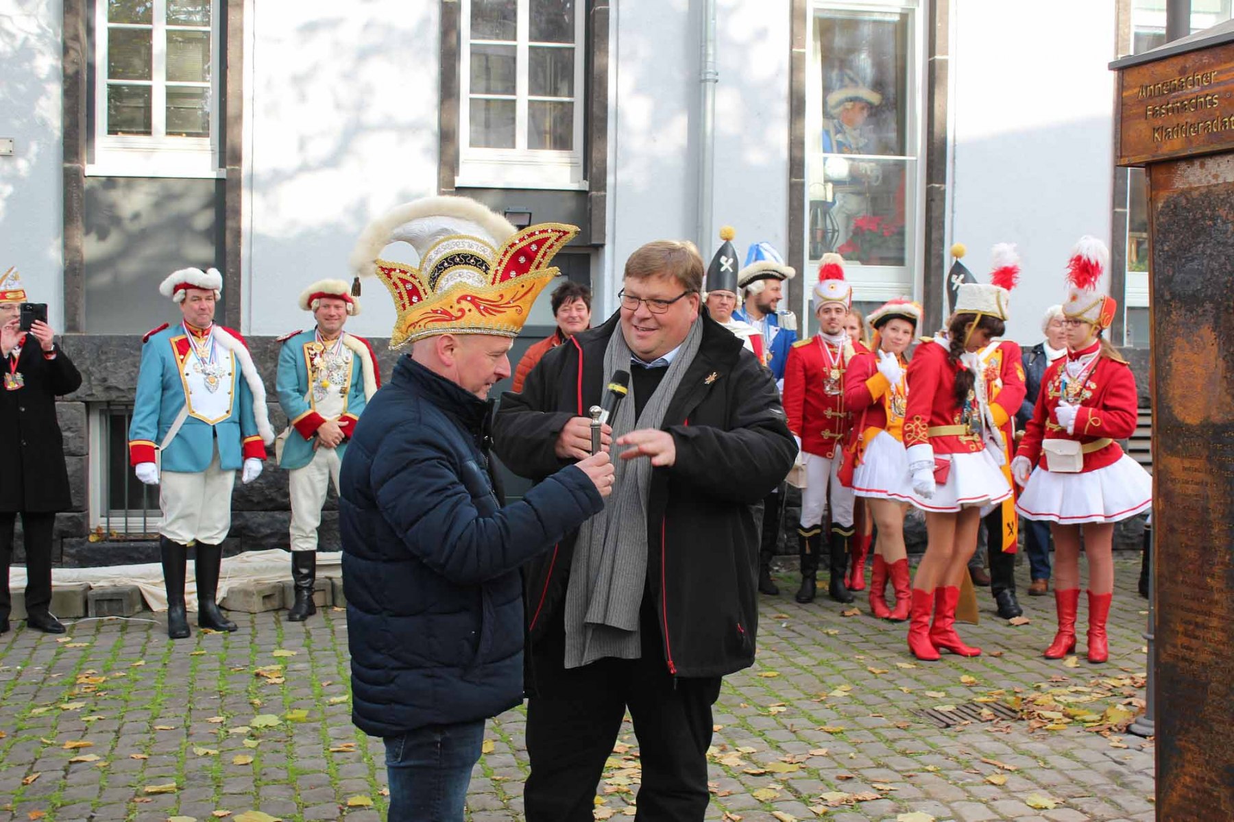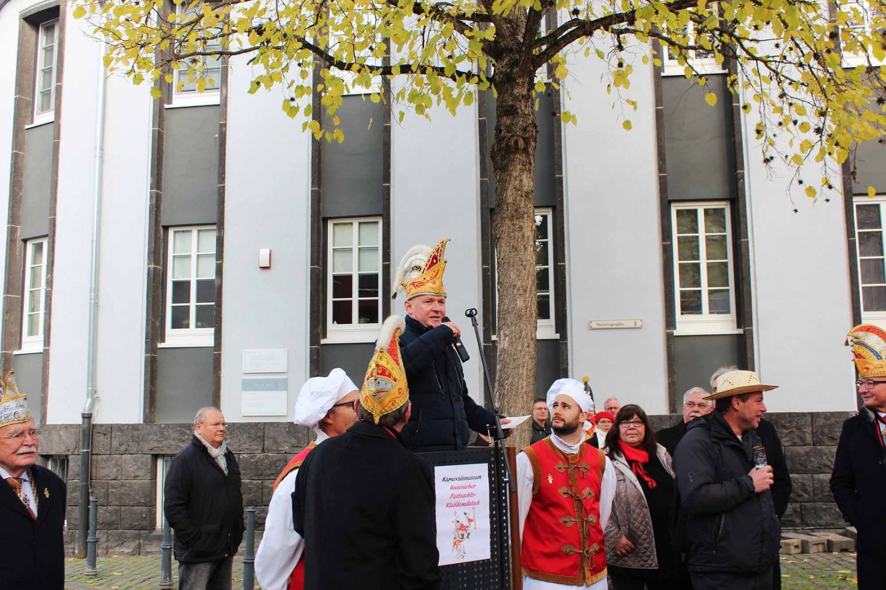 „Eine 4,20 Meter hohe, rostfarbene Metallsäule, in ihrem unteren Teil versehen mit Namensgravuren der rund 80 Tollitätenpaare, die von 1896 bis 2019 als närrische Regenten in die Karnevalshistorie der Bäckerjungenstadt einzogen. Sie bietet noch Platz für etwa 40 weitere Prinzenpaare. Die Prinzen-Säule trägt die Aufschrift „Andernacher Fastnachts-Kladderadatsch“. Ihren oberen Teil bildet ein Stahlrohr, das von vier mehrfarbigen Narrenkappen und großen roten Schlüsseln der Stadt geziert wird. Darauf als Spitze ein goldenes Prinzenzepter. Am Fuß des Brauchtums-Denkmals, das in der Dunkelheit durch Strahler beleuchtet werden kann, erfährt man die Namen der ausführenden Personen und Firmen. Auch die Spenderinnen und Spender werden genannt.“
