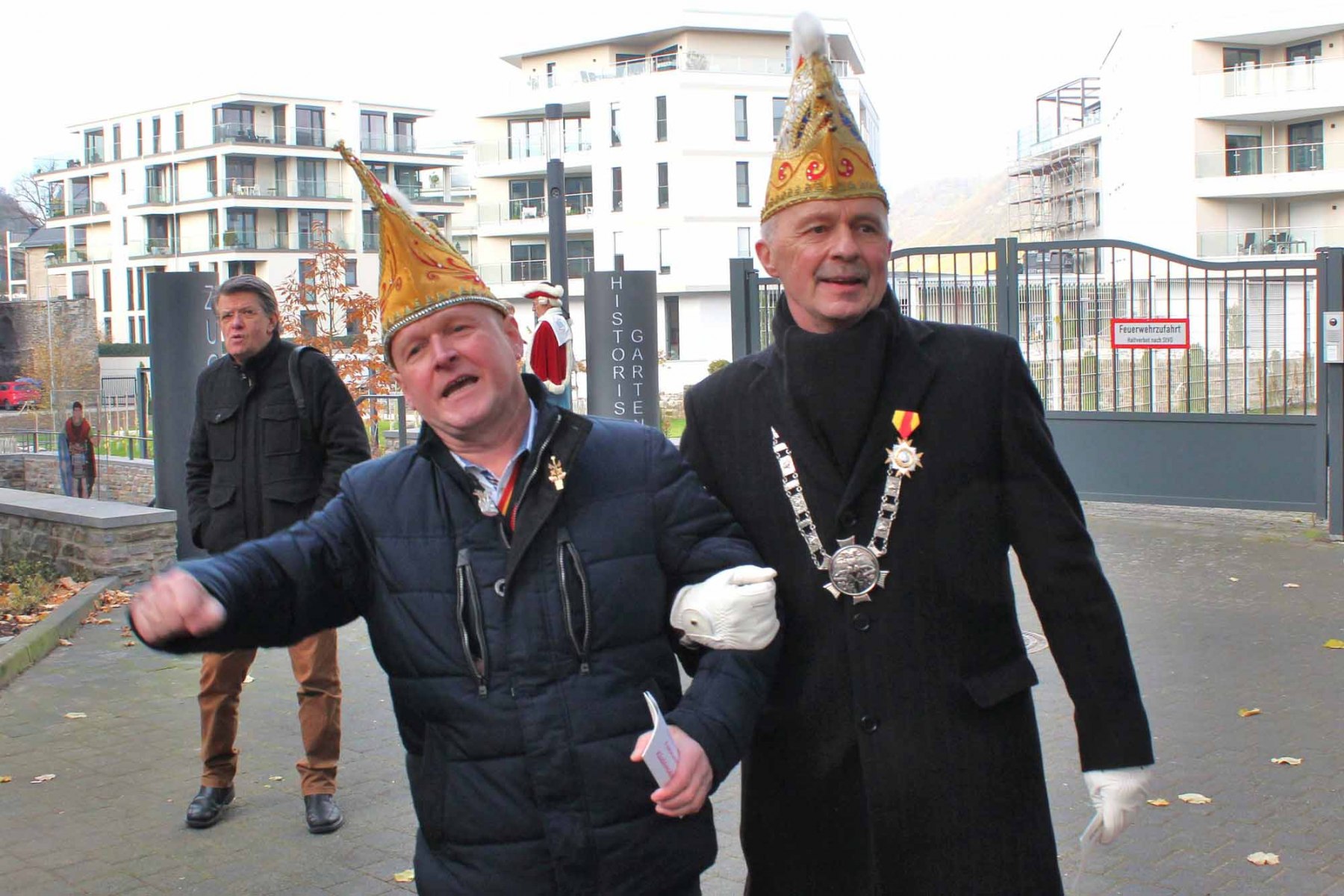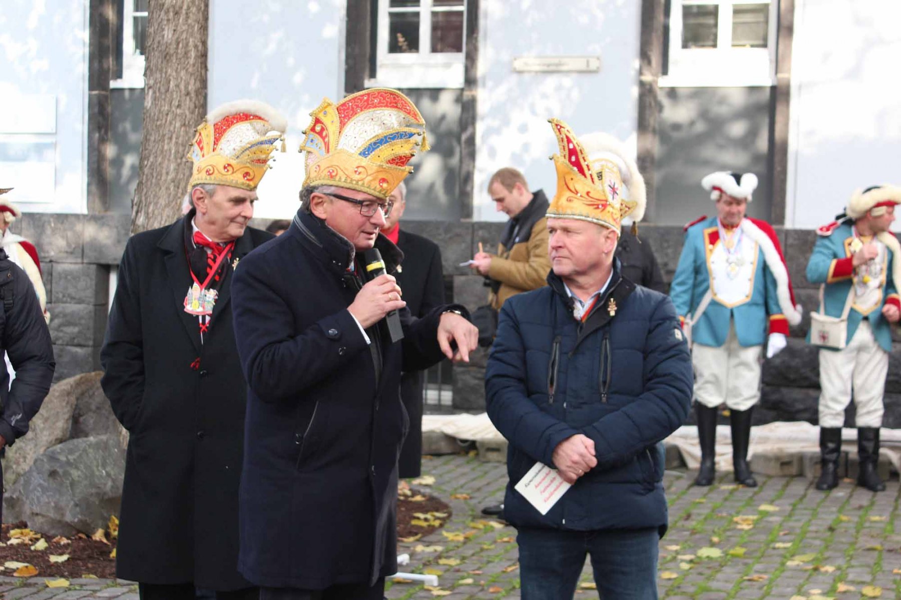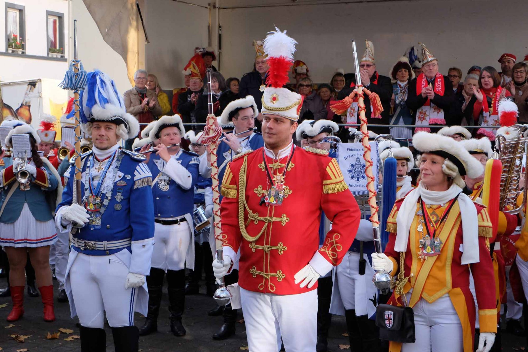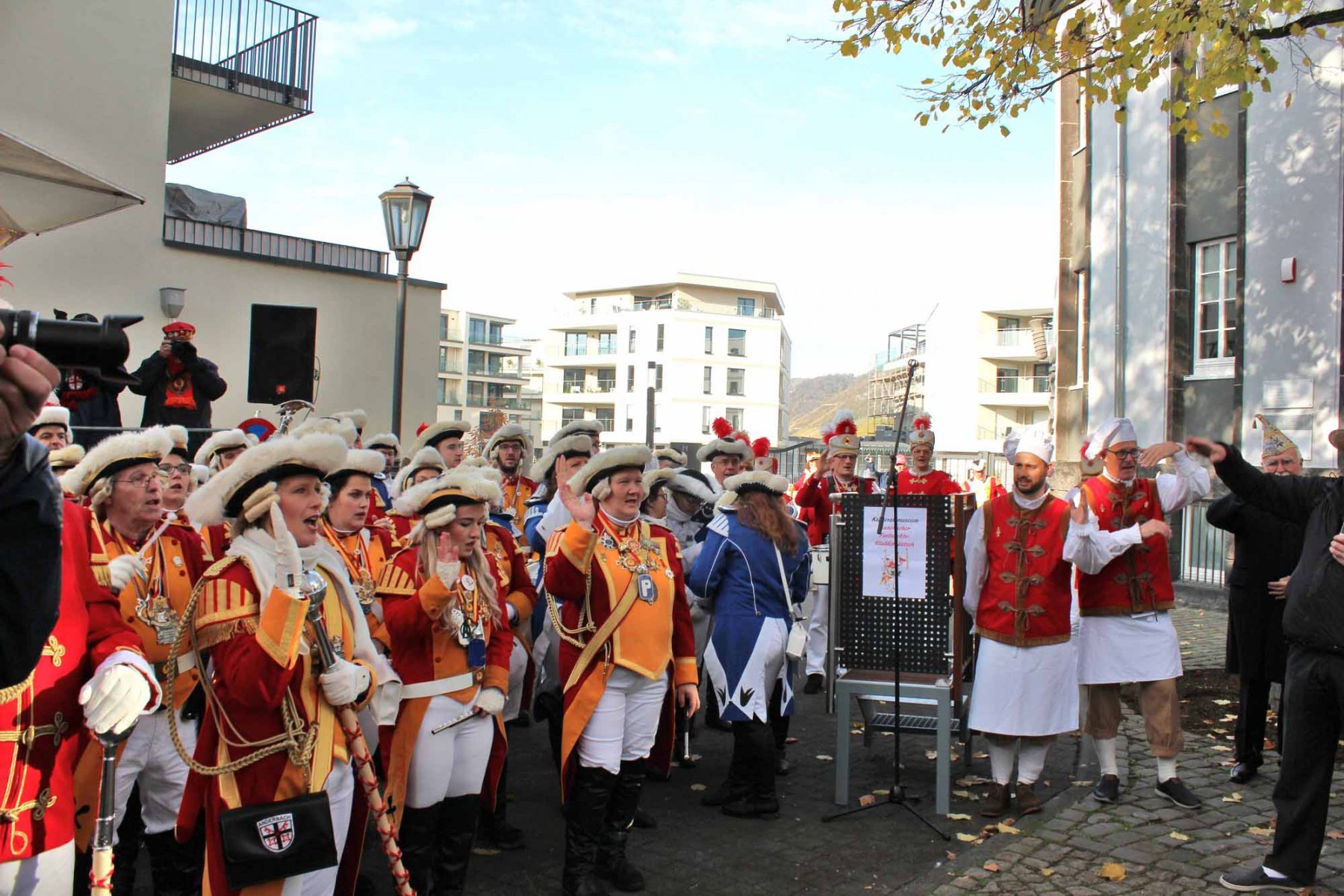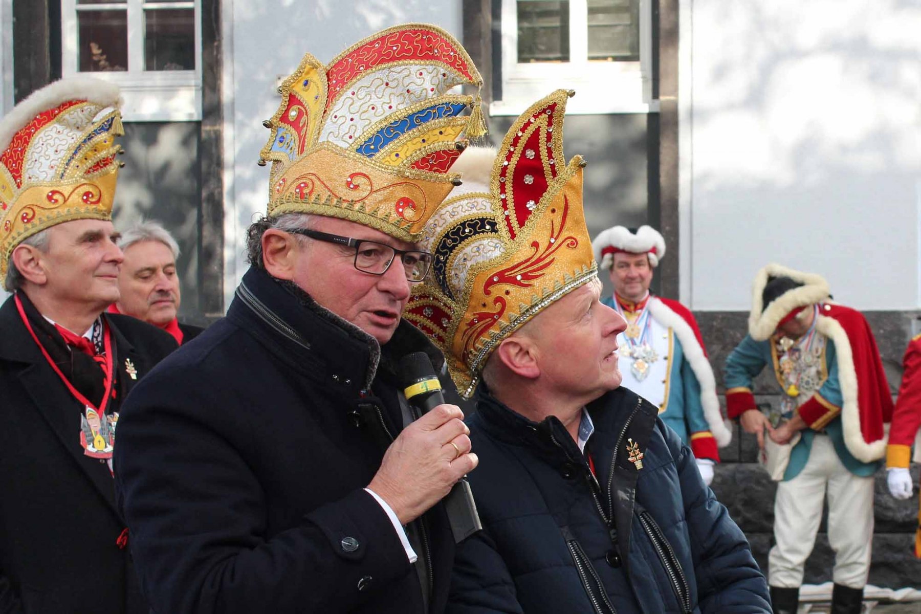 „Eine 4,20 Meter hohe, rostfarbene Metallsäule, in ihrem unteren Teil versehen mit Namensgravuren der rund 80 Tollitätenpaare, die von 1896 bis 2019 als närrische Regenten in die Karnevalshistorie der Bäckerjungenstadt einzogen. Sie bietet noch Platz für etwa 40 weitere Prinzenpaare. Die Prinzen-Säule trägt die Aufschrift „Andernacher Fastnachts-Kladderadatsch“. Ihren oberen Teil bildet ein Stahlrohr, das von vier mehrfarbigen Narrenkappen und großen roten Schlüsseln der Stadt geziert wird. Darauf als Spitze ein goldenes Prinzenzepter. Am Fuß des Brauchtums-Denkmals, das in der Dunkelheit durch Strahler beleuchtet werden kann, erfährt man die Namen der ausführenden Personen und Firmen. Auch die Spenderinnen und Spender werden genannt.“