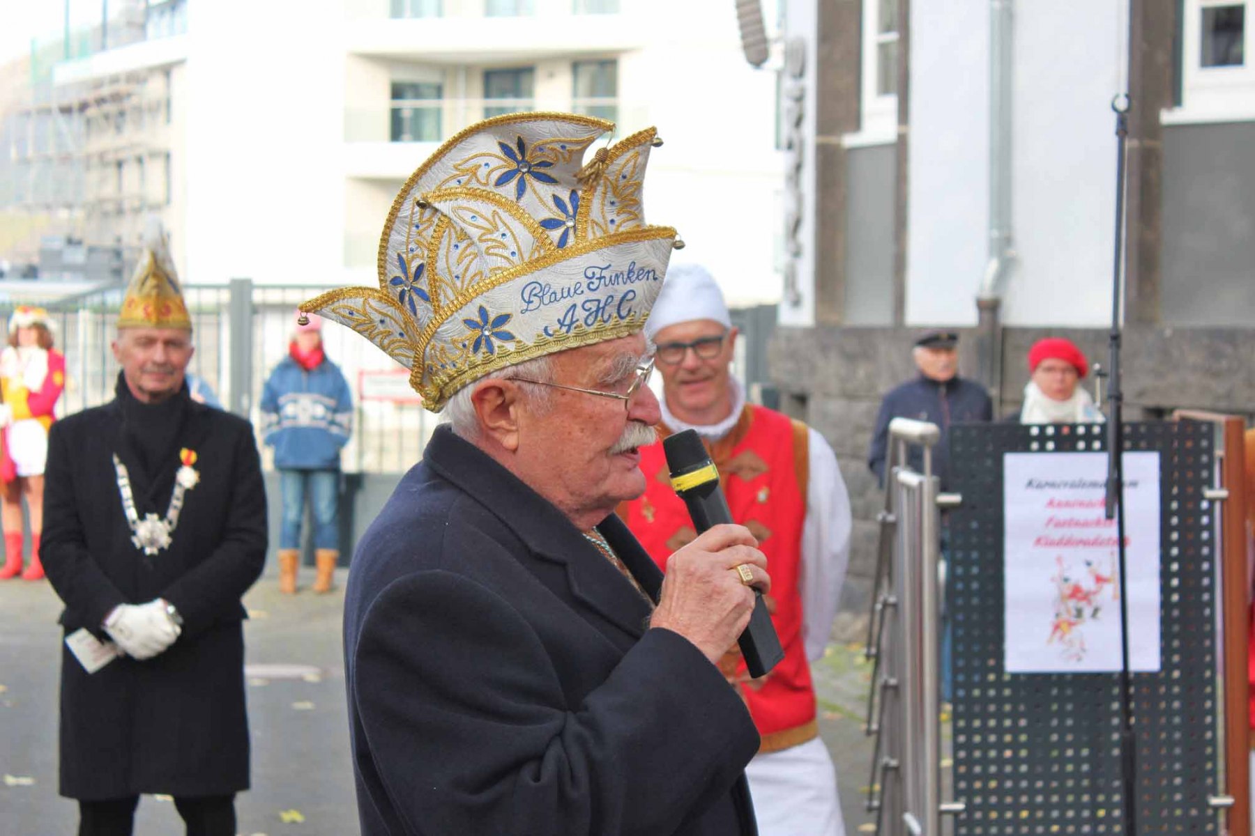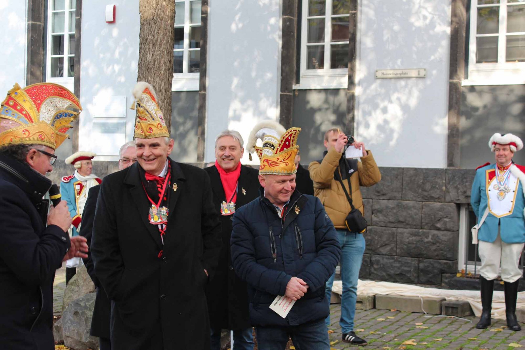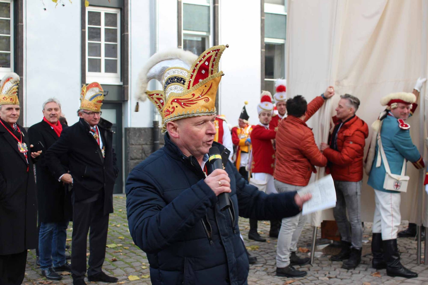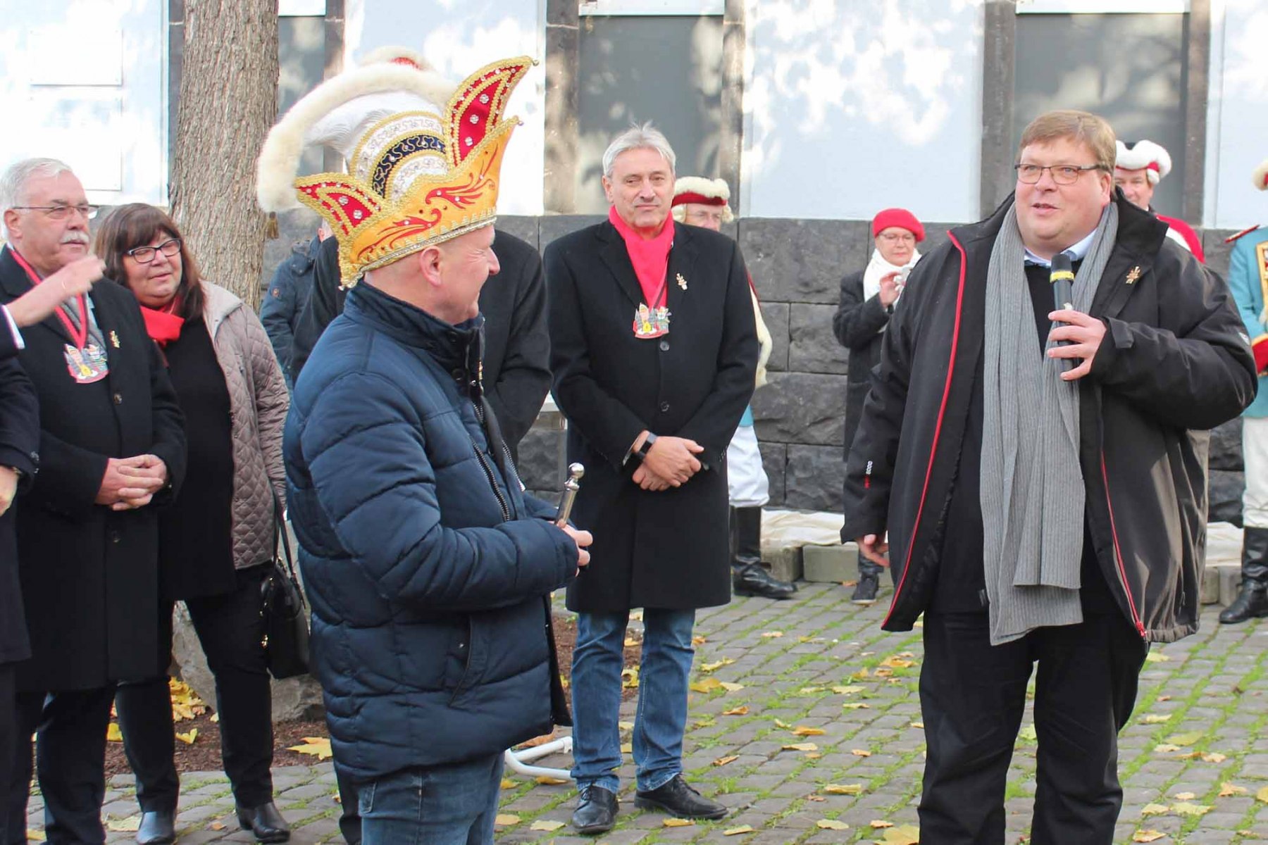 „Eine 4,20 Meter hohe, rostfarbene Metallsäule, in ihrem unteren Teil versehen mit Namensgravuren der rund 80 Tollitätenpaare, die von 1896 bis 2019 als närrische Regenten in die Karnevalshistorie der Bäckerjungenstadt einzogen. Sie bietet noch Platz für etwa 40 weitere Prinzenpaare. Die Prinzen-Säule trägt die Aufschrift „Andernacher Fastnachts-Kladderadatsch“. Ihren oberen Teil bildet ein Stahlrohr, das von vier mehrfarbigen Narrenkappen und großen roten Schlüsseln der Stadt geziert wird. Darauf als Spitze ein goldenes Prinzenzepter. Am Fuß des Brauchtums-Denkmals, das in der Dunkelheit durch Strahler beleuchtet werden kann, erfährt man die Namen der ausführenden Personen und Firmen. Auch die Spenderinnen und Spender werden genannt.“