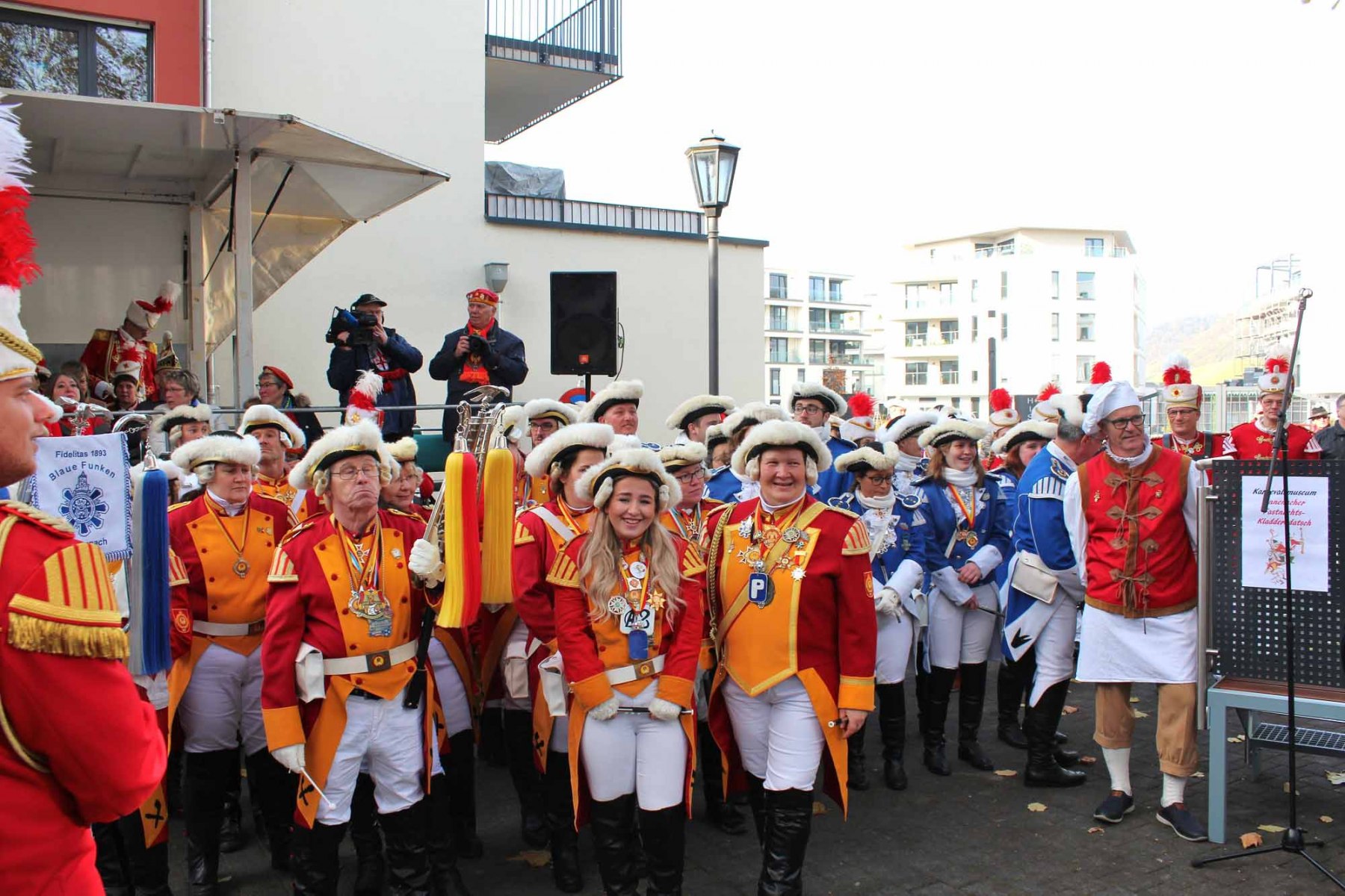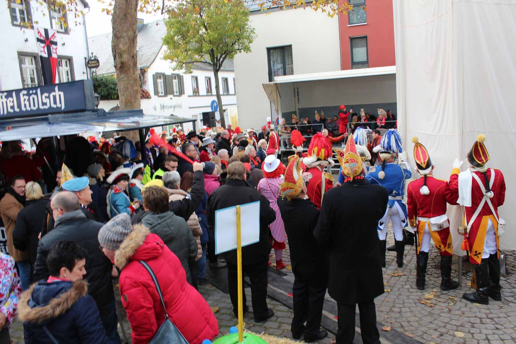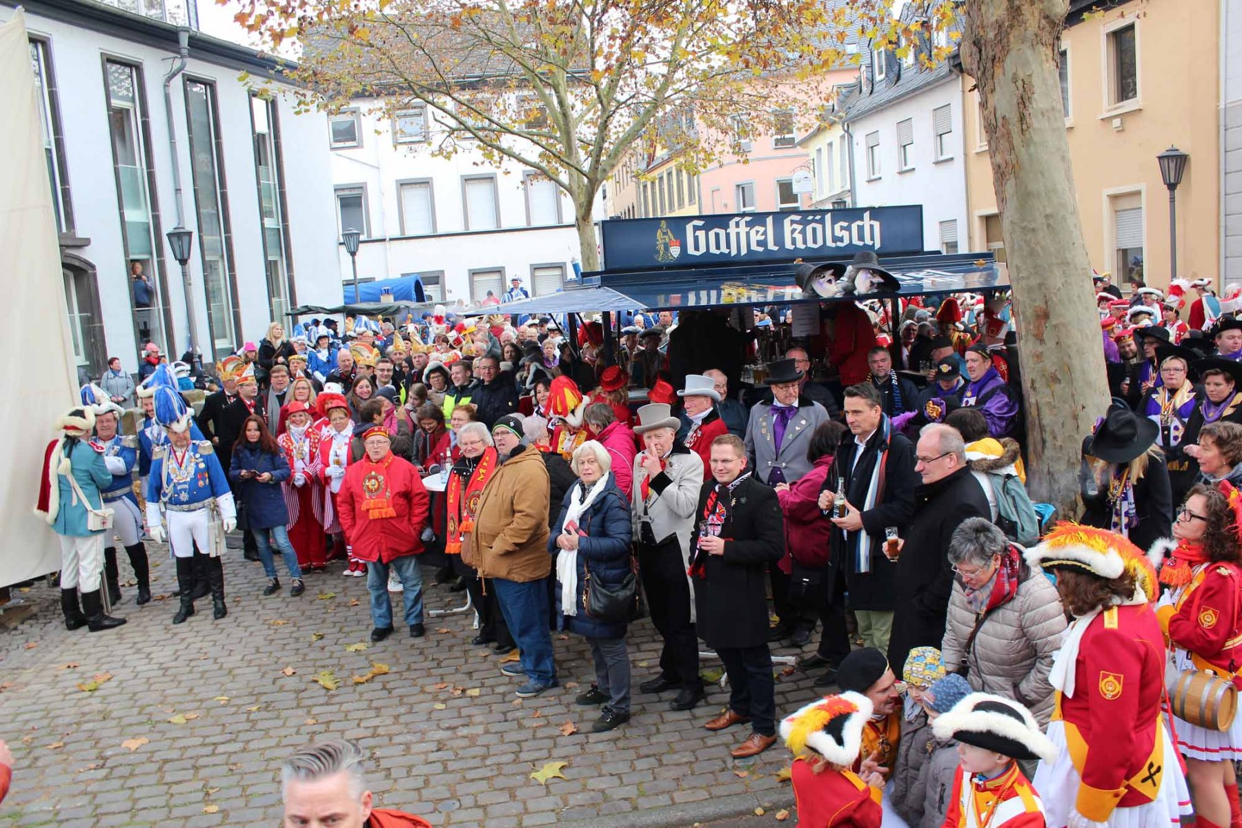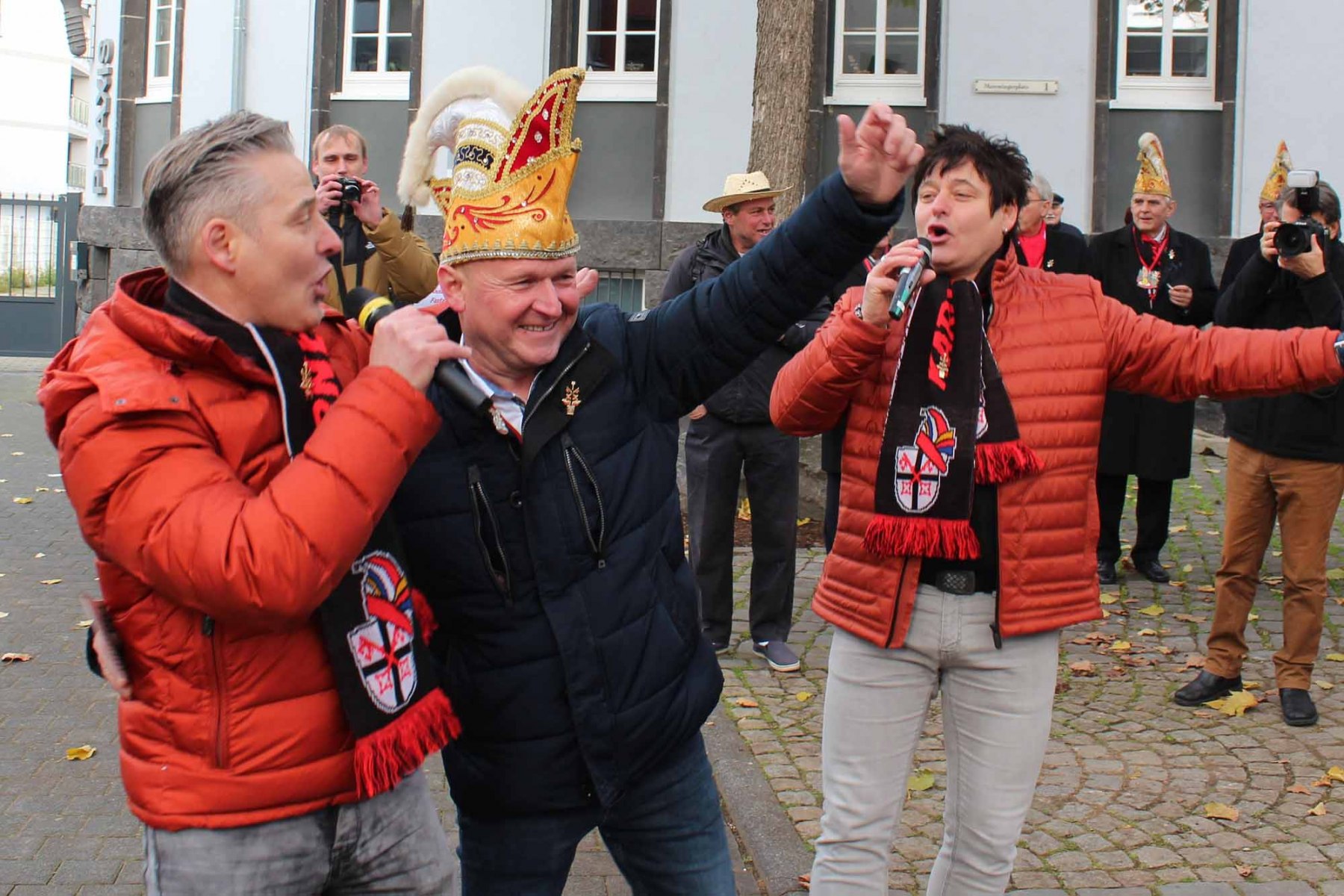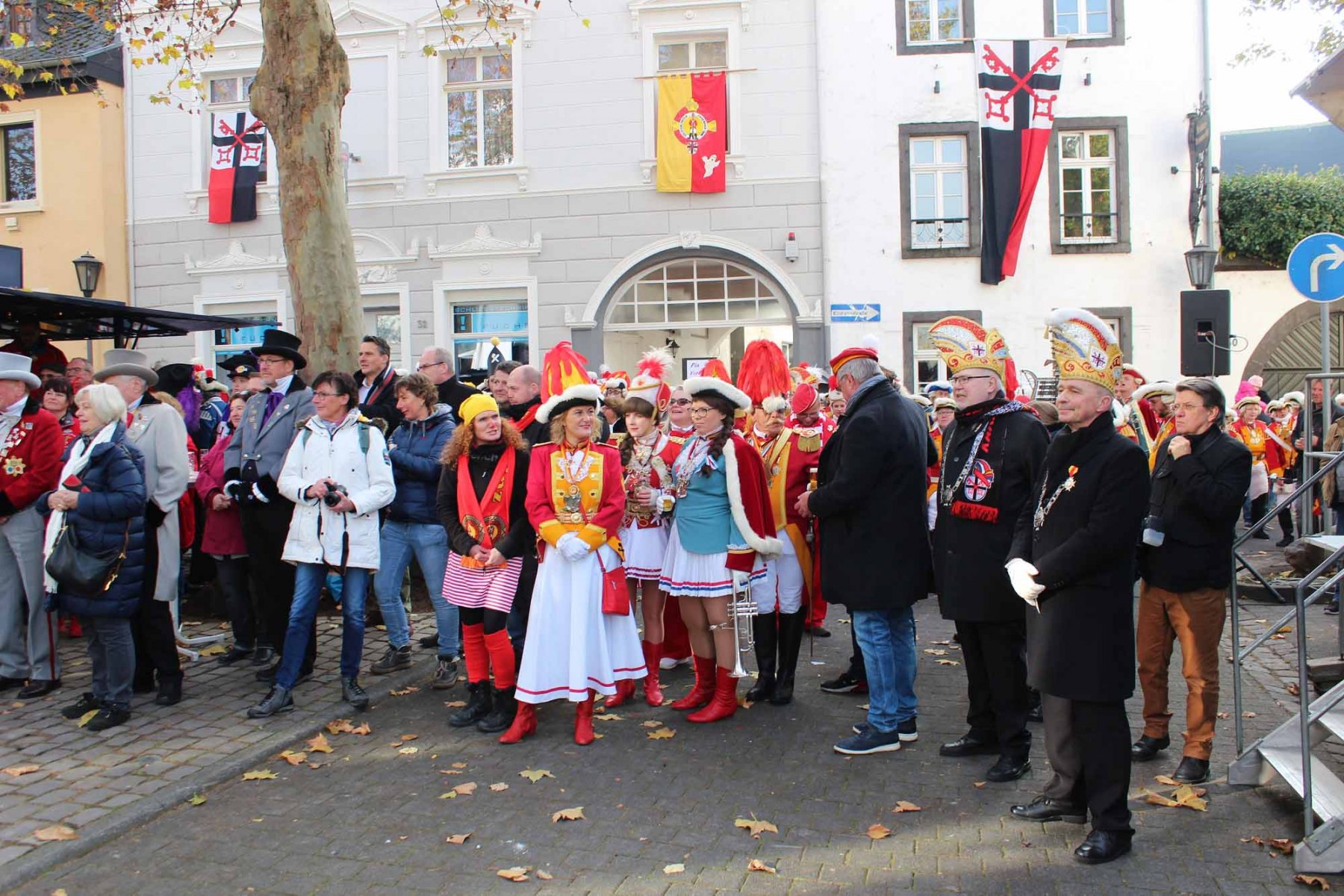 „Eine 4,20 Meter hohe, rostfarbene Metallsäule, in ihrem unteren Teil versehen mit Namensgravuren der rund 80 Tollitätenpaare, die von 1896 bis 2019 als närrische Regenten in die Karnevalshistorie der Bäckerjungenstadt einzogen. Sie bietet noch Platz für etwa 40 weitere Prinzenpaare. Die Prinzen-Säule trägt die Aufschrift „Andernacher Fastnachts-Kladderadatsch“. Ihren oberen Teil bildet ein Stahlrohr, das von vier mehrfarbigen Narrenkappen und großen roten Schlüsseln der Stadt geziert wird. Darauf als Spitze ein goldenes Prinzenzepter. Am Fuß des Brauchtums-Denkmals, das in der Dunkelheit durch Strahler beleuchtet werden kann, erfährt man die Namen der ausführenden Personen und Firmen. Auch die Spenderinnen und Spender werden genannt.“