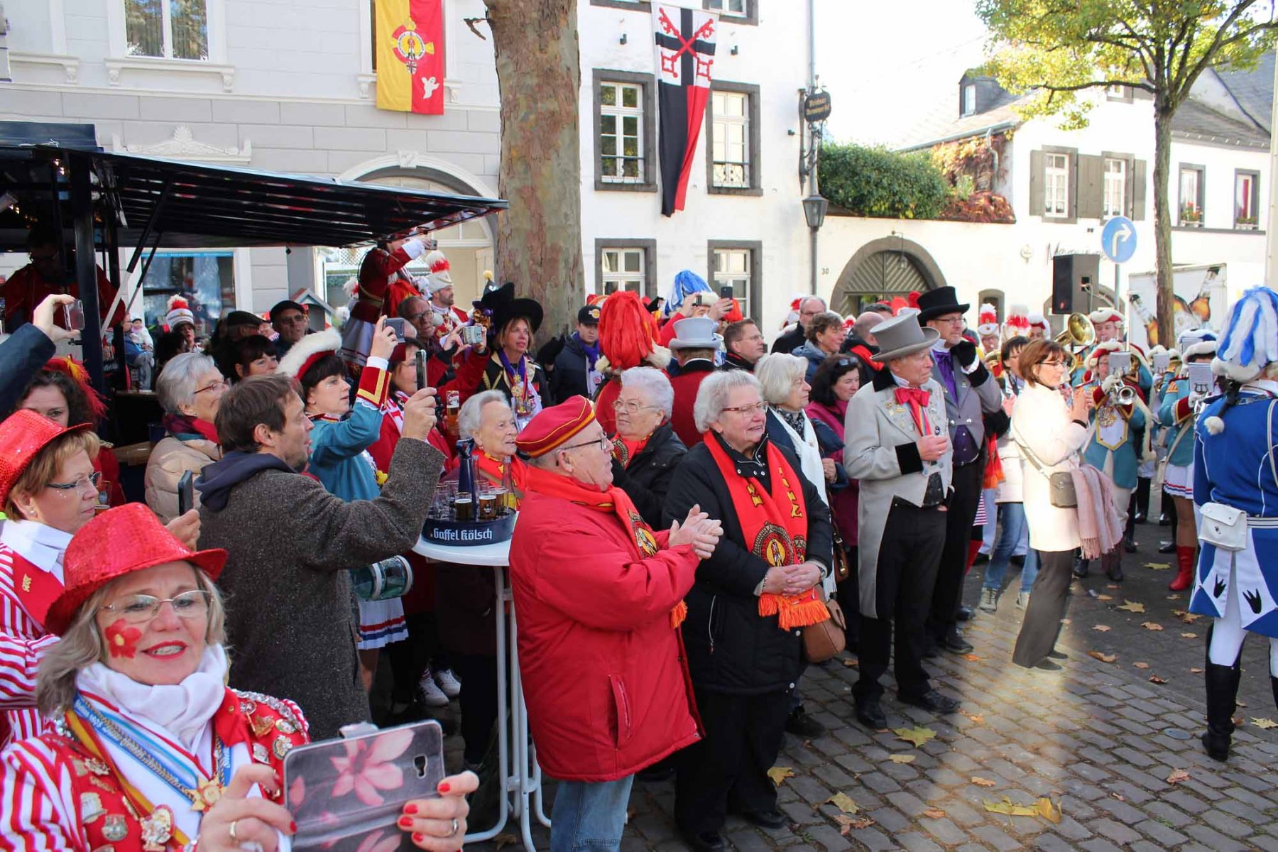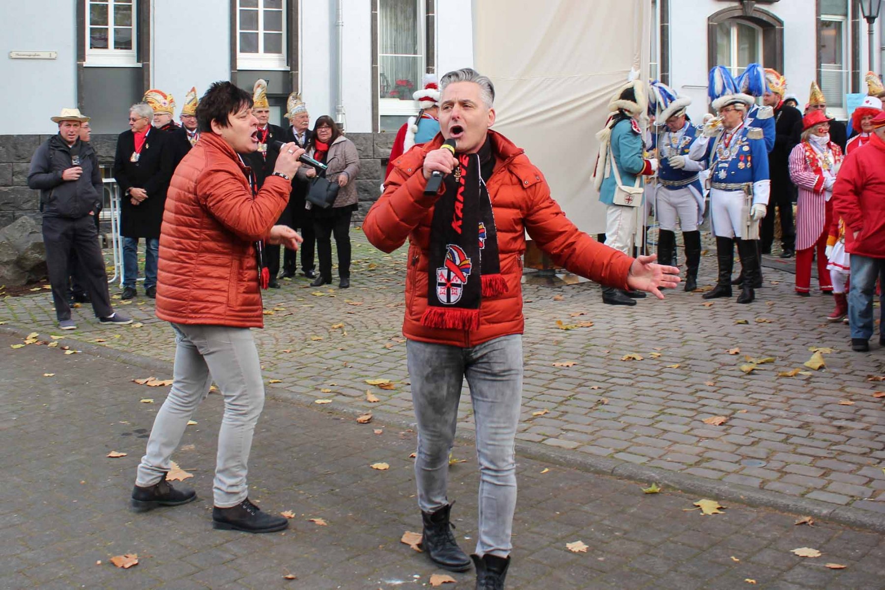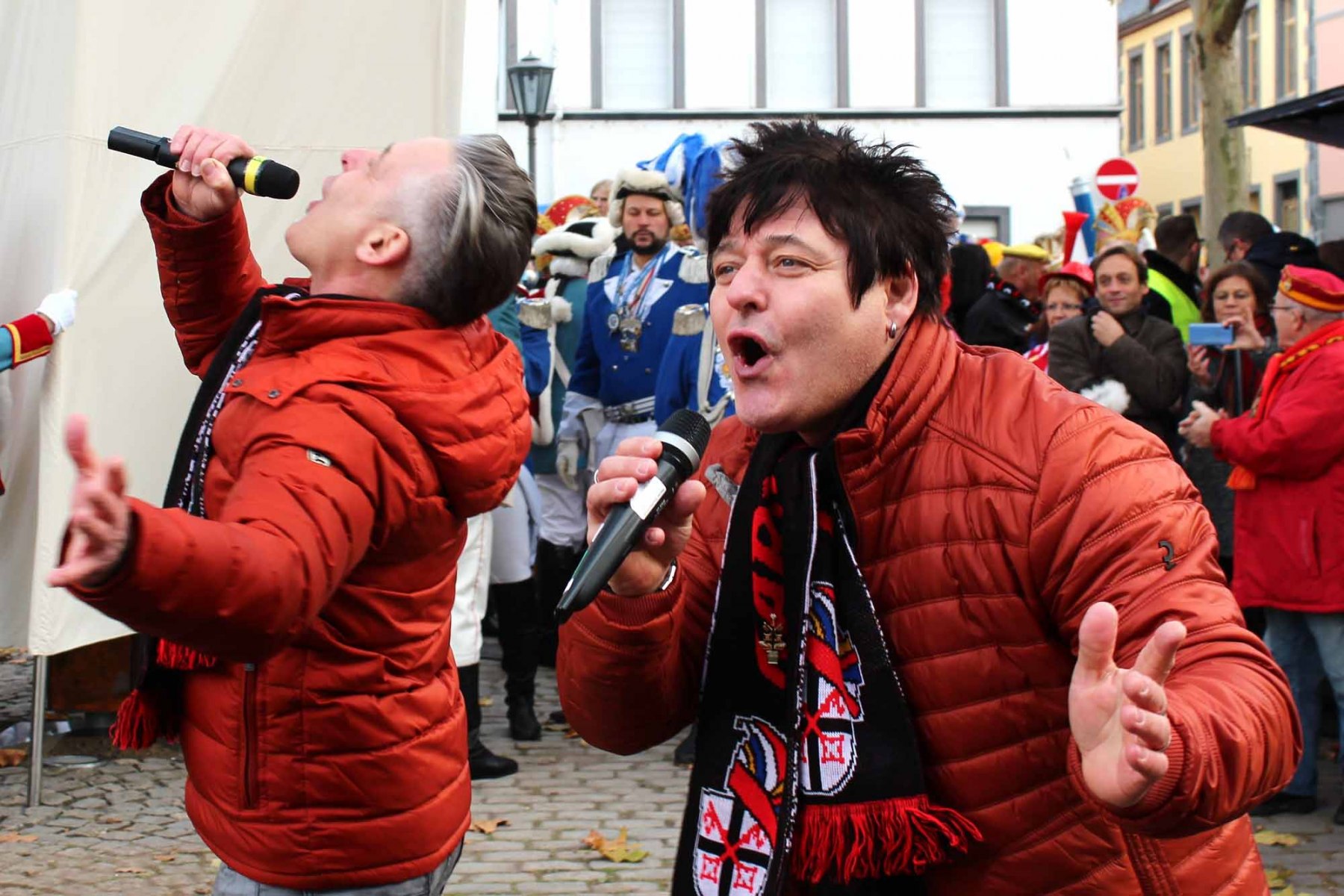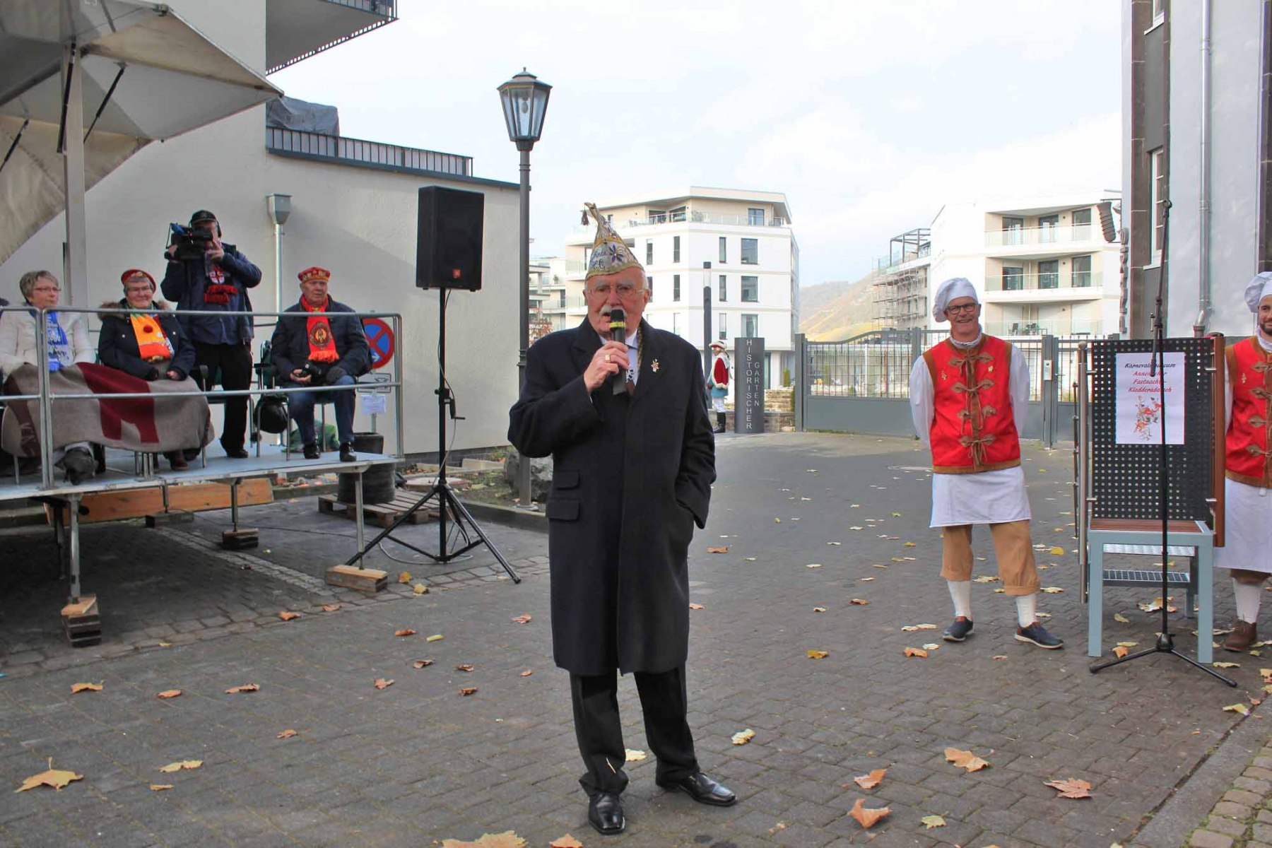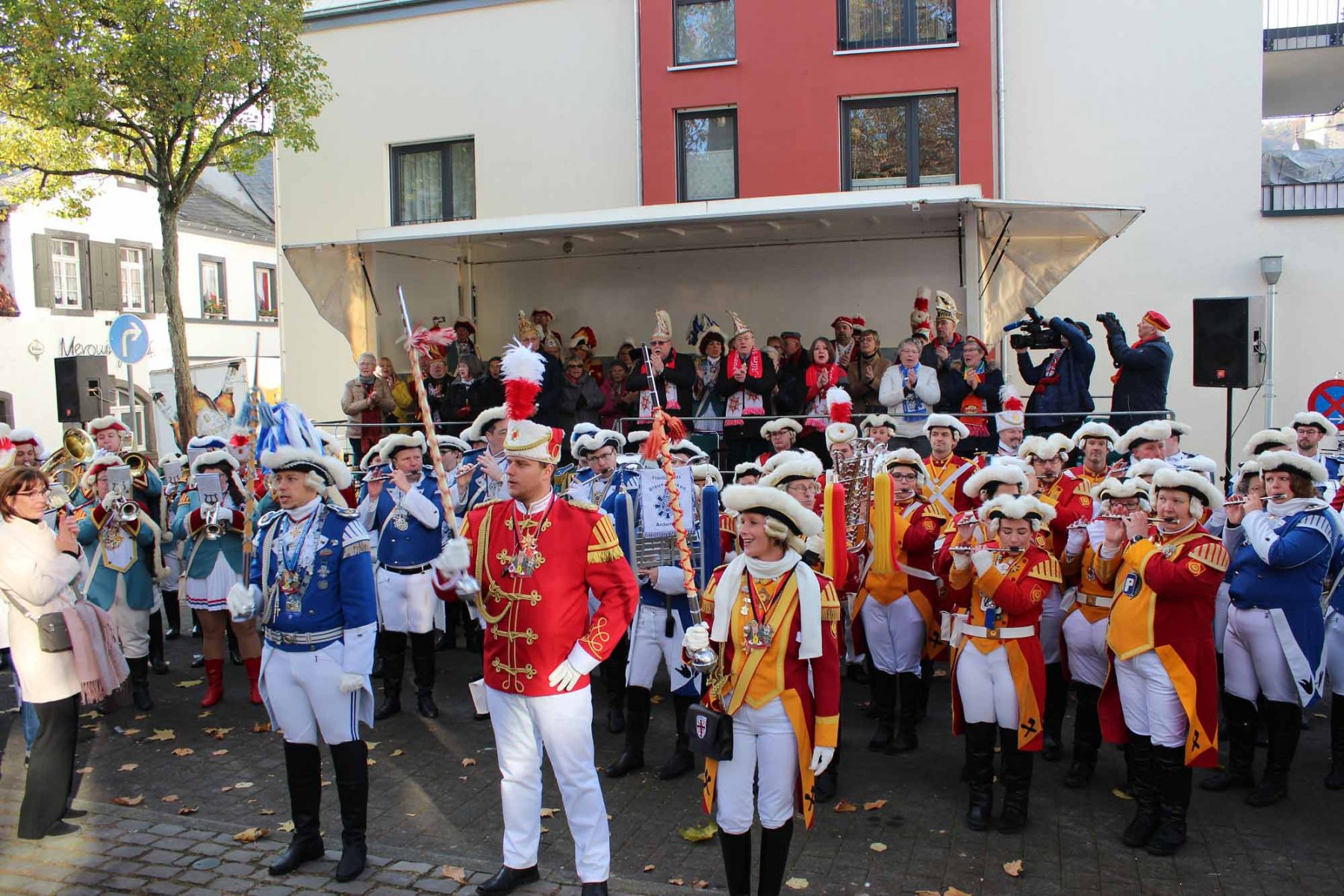 „Eine 4,20 Meter hohe, rostfarbene Metallsäule, in ihrem unteren Teil versehen mit Namensgravuren der rund 80 Tollitätenpaare, die von 1896 bis 2019 als närrische Regenten in die Karnevalshistorie der Bäckerjungenstadt einzogen. Sie bietet noch Platz für etwa 40 weitere Prinzenpaare. Die Prinzen-Säule trägt die Aufschrift „Andernacher Fastnachts-Kladderadatsch“. Ihren oberen Teil bildet ein Stahlrohr, das von vier mehrfarbigen Narrenkappen und großen roten Schlüsseln der Stadt geziert wird. Darauf als Spitze ein goldenes Prinzenzepter. Am Fuß des Brauchtums-Denkmals, das in der Dunkelheit durch Strahler beleuchtet werden kann, erfährt man die Namen der ausführenden Personen und Firmen. Auch die Spenderinnen und Spender werden genannt.“