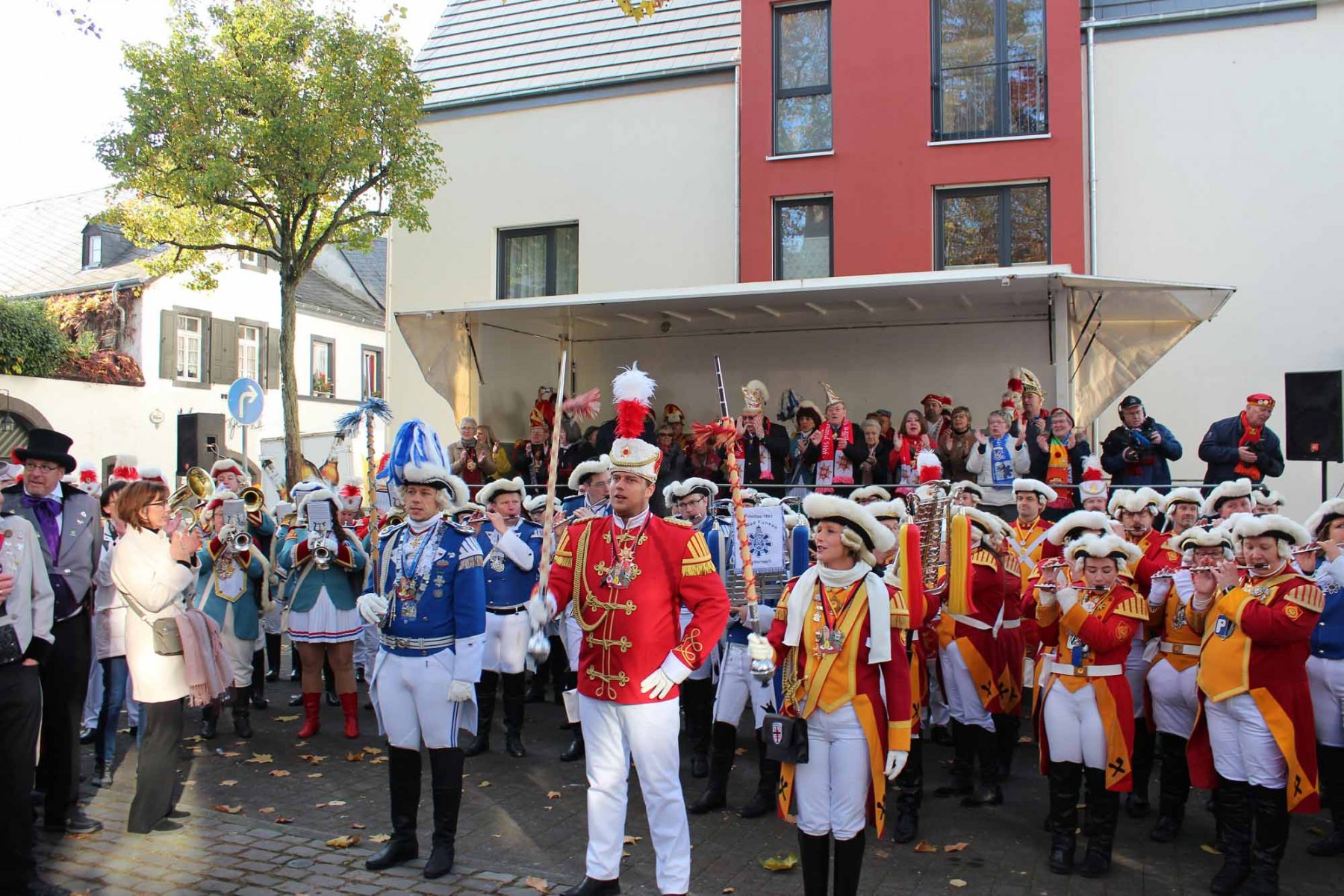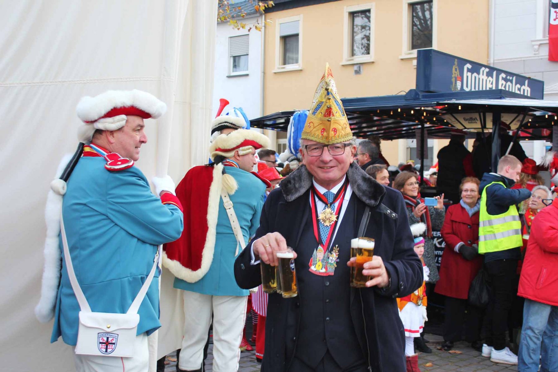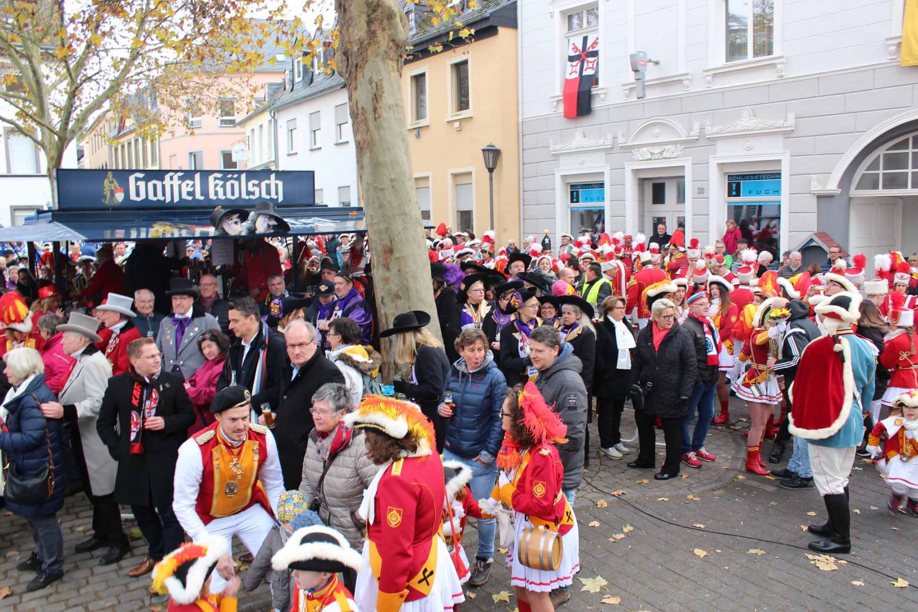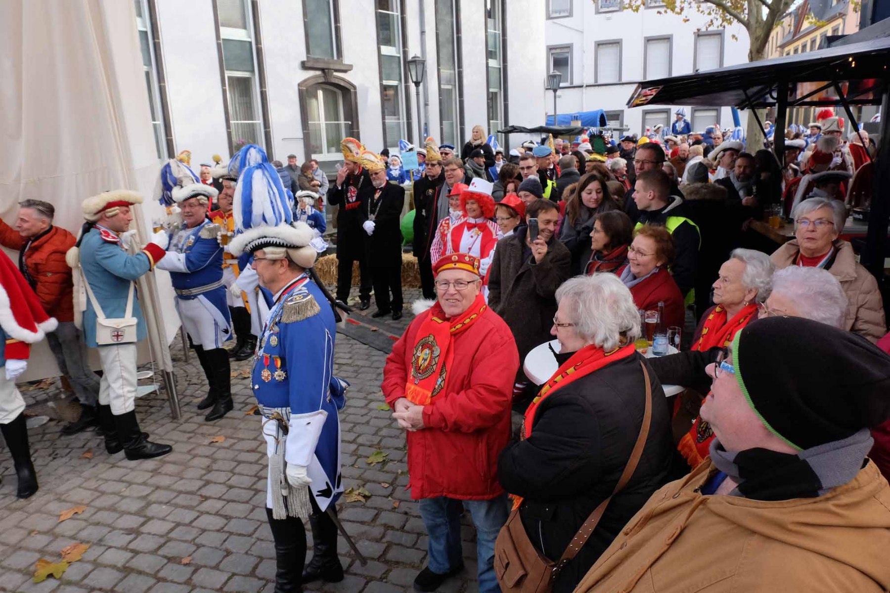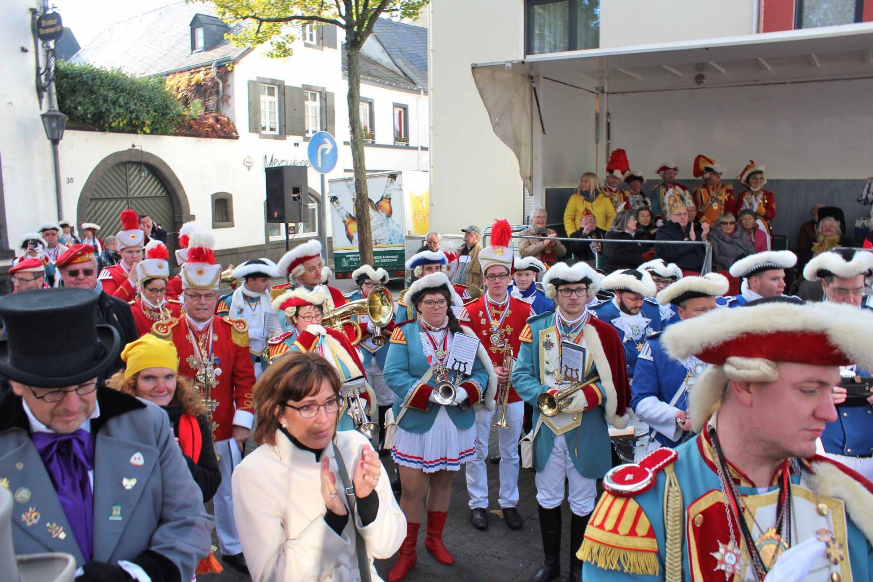 „Eine 4,20 Meter hohe, rostfarbene Metallsäule, in ihrem unteren Teil versehen mit Namensgravuren der rund 80 Tollitätenpaare, die von 1896 bis 2019 als närrische Regenten in die Karnevalshistorie der Bäckerjungenstadt einzogen. Sie bietet noch Platz für etwa 40 weitere Prinzenpaare. Die Prinzen-Säule trägt die Aufschrift „Andernacher Fastnachts-Kladderadatsch“. Ihren oberen Teil bildet ein Stahlrohr, das von vier mehrfarbigen Narrenkappen und großen roten Schlüsseln der Stadt geziert wird. Darauf als Spitze ein goldenes Prinzenzepter. Am Fuß des Brauchtums-Denkmals, das in der Dunkelheit durch Strahler beleuchtet werden kann, erfährt man die Namen der ausführenden Personen und Firmen. Auch die Spenderinnen und Spender werden genannt.“